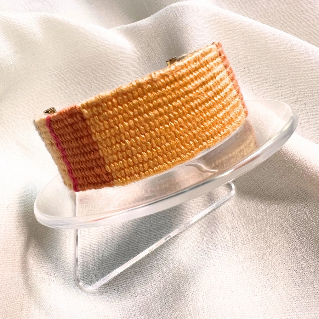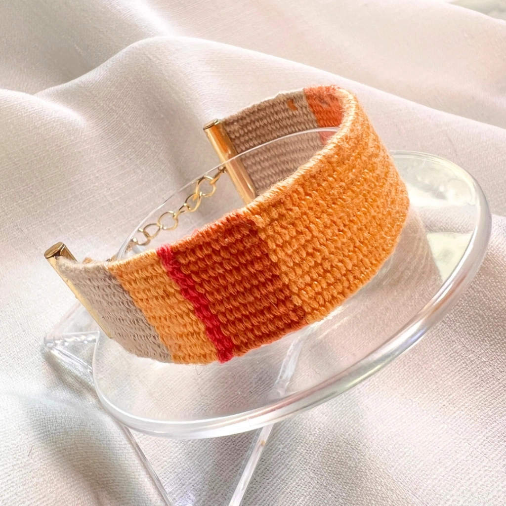 El emeğiyle dokuma tezgahında özenle üretilmiş bu renkli bileklik, tarzınıza özgün bir dokunuş katıyor! Canlı renkleri ve ince detaylarıyla dikkat çeken bu el yapımı bileklik, hem günlük kullanıma hem de özel kombinlere uyum sağlar. Hafif ve rahat yapısıyla bileğinizde yokmuş gibi hissettiren bu aksesuar, kişisel stilinizi tamamlamanın en şık yollarından biri!