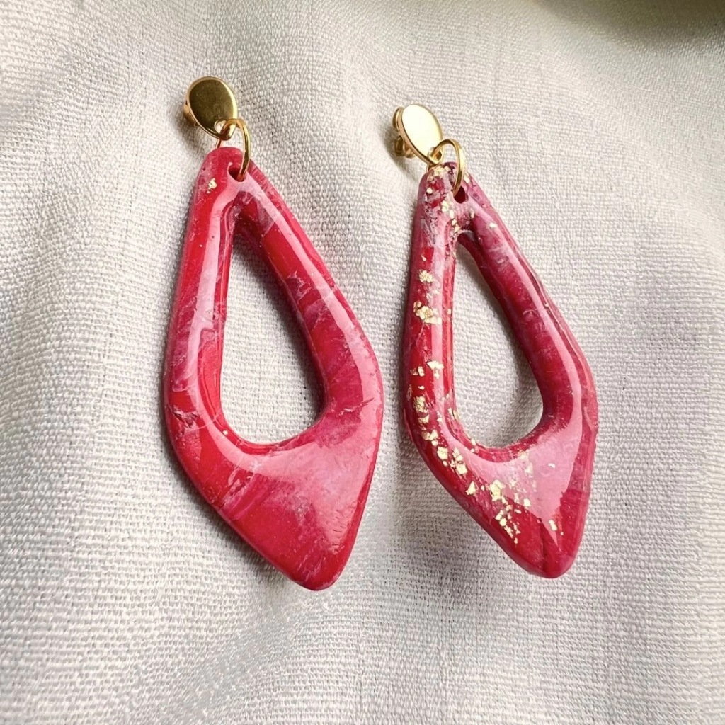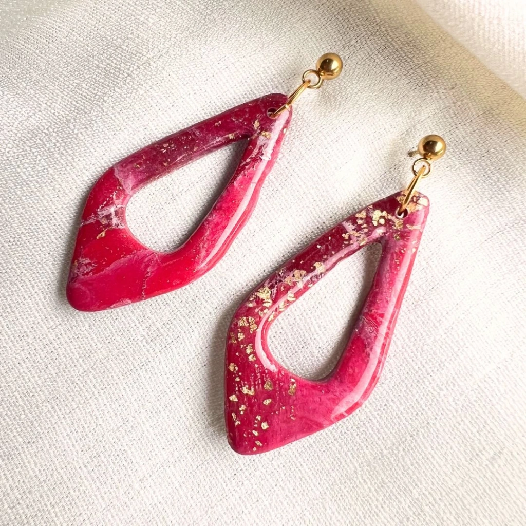 Ember Spike, ateşten kopmuş bir parçanın akışkan hareketini ve sivri enerjisini bir araya getiren heykelsi bir küpedir. İç boşluklu formu, negatif alanı tasarımın aktif bir parçası haline getirirken; derin kırmızı tonlar ve altın dokunuşlar güçlü bir kontrast yaratır.