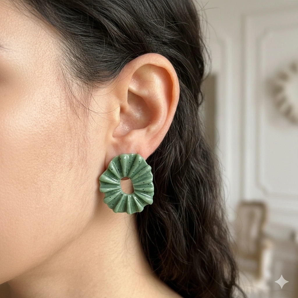 Halo küpe, dairesel formu ve iç boşluğu ile mekânsal bir denge duygusu yaratmak üzere tasarlandı. Yüzeydeki oluklu detaylar ışığı farklı açılardan yakalayarak forma derinlik kazandırır.