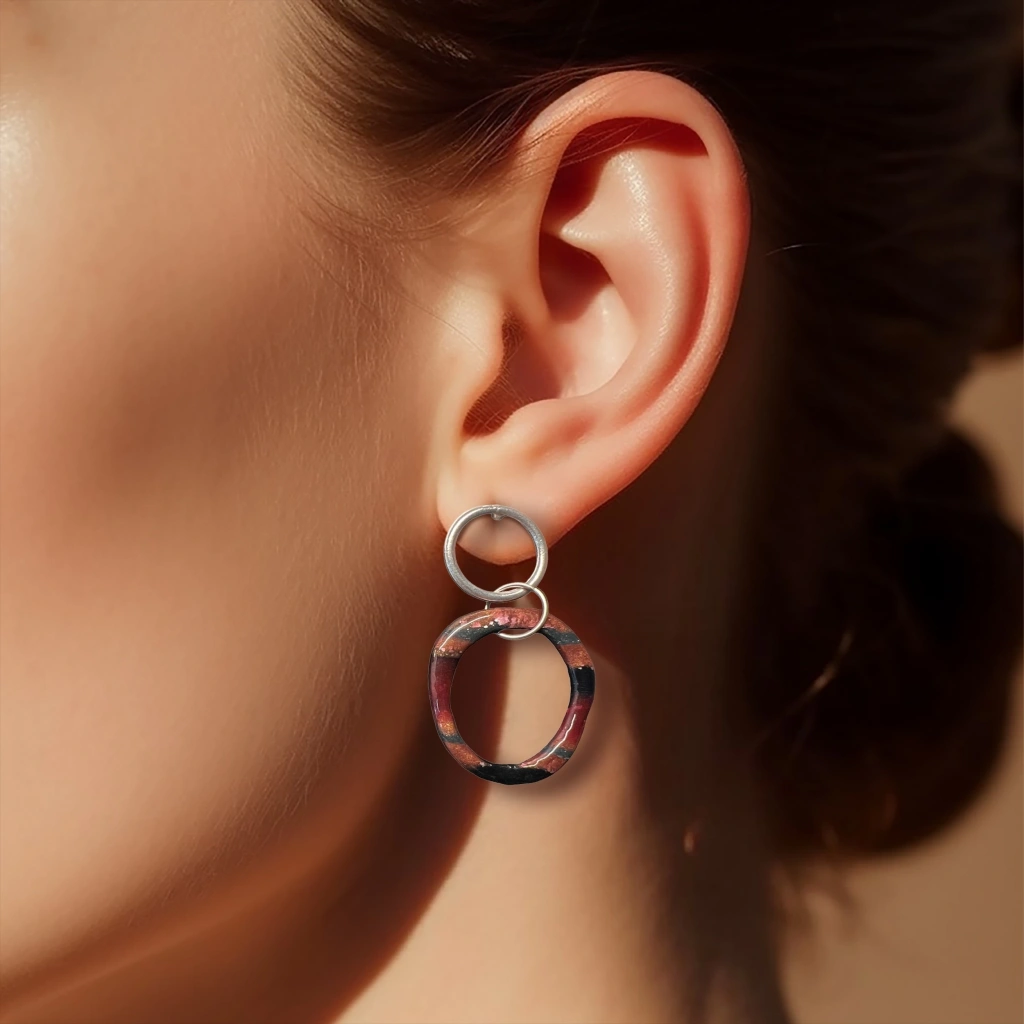 Bu göz alıcı küpe, reçine kaplı polimer kil ve cerrahi çelikten üretilmiştir. Modern ve şık tasarımıyla dikkat çeken bu iğneli küpe, her türlü kıyafetle mükemmel bir uyum sağlar.