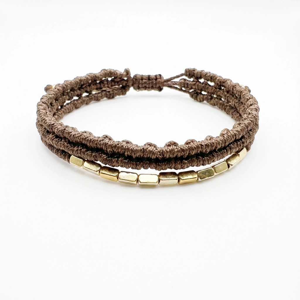 • El yapımı bu bileklikler, ip ve metal detayların minimal uyumunu yansıtır. Ayarlanabilir yapısıyla konforlu, zamansız tasarımıyla her kombine kolayca eşlik eder.