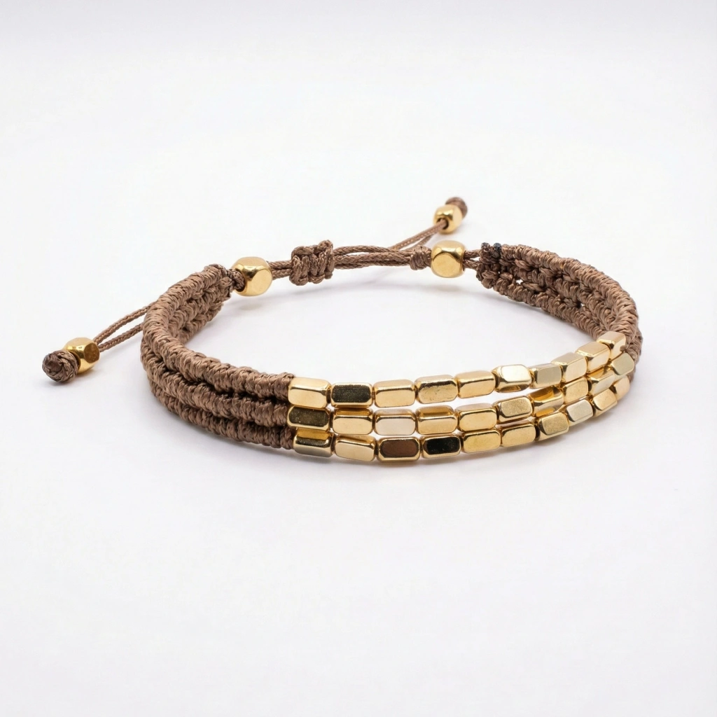 • El yapımı bu bileklikler, ip ve metal detayların minimal uyumunu yansıtır. Ayarlanabilir yapısıyla konforlu, zamansız tasarımıyla her kombine kolayca eşlik eder.