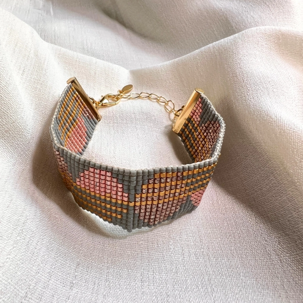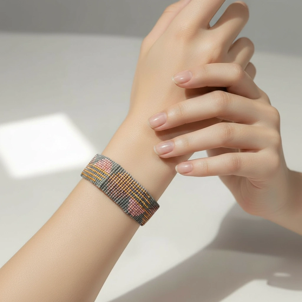 El emeğiyle titizlikle işlenmiş Miyuki boncuk bileklik, zarif ve şık tasarımıyla bileğinize renk katıyor! Yüksek kaliteli Miyuki boncukları kullanılarak elde dokunan bu bileklik, hem günlük kullanımda hem de özel günlerde stilinizi tamamlayacak harika bir aksesuar.