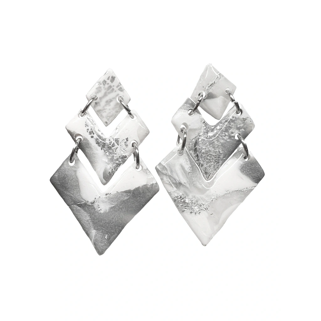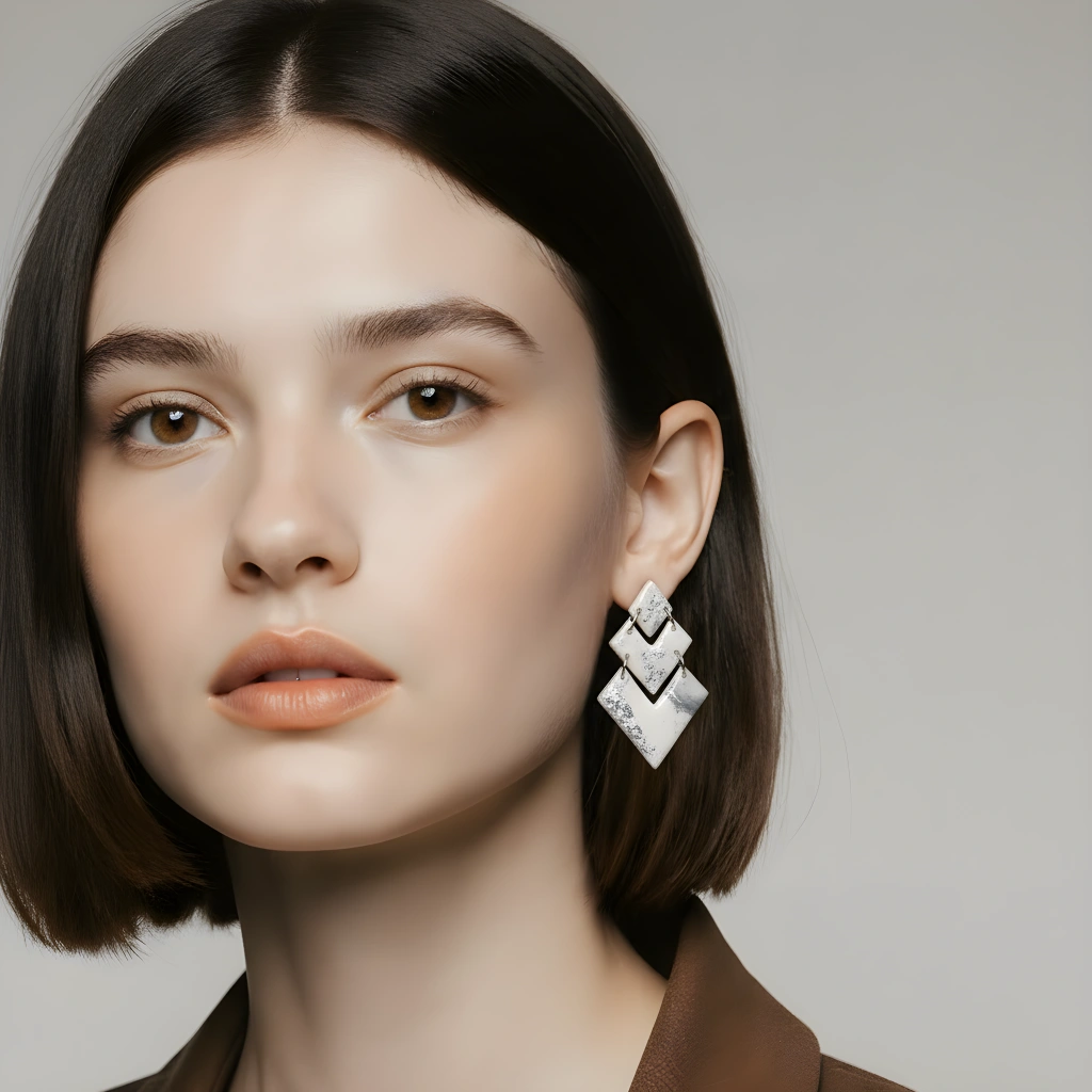 • İnci beyazının yumuşak ışıltısıyla şekillenen bu el yapımı polimer kil küpe, geometrik hatları ve hafif dokusuyla sade ama etkileyici bir şıklık sunar. Günlük ve özel kombinlere zarif bir tamamlayıcı olur.