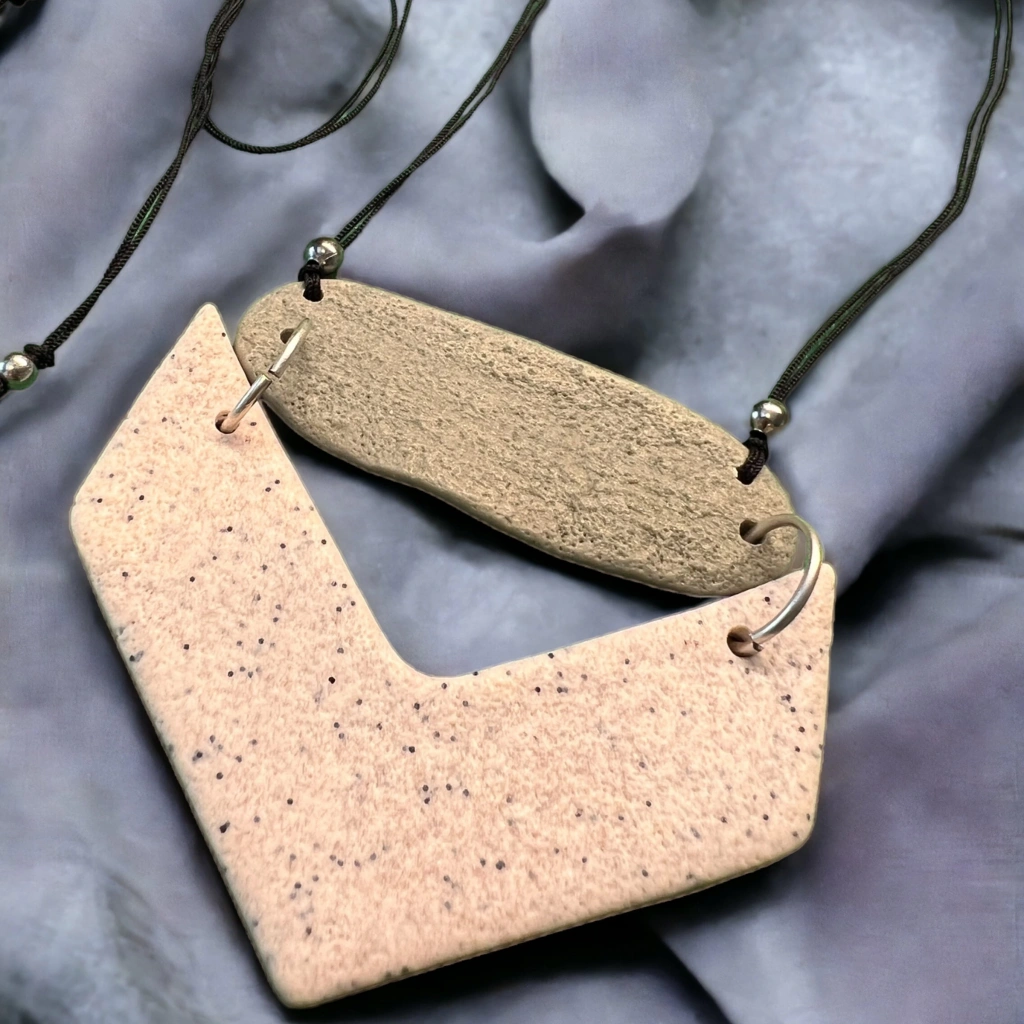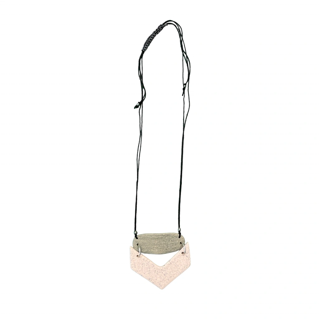 Bu şık kolye, polimer kil ve ipten özenle tasarlanmıştır. Ayarlanabilir uzunluğu sayesinde her boyda rahatlıkla kullanılabilir. Kolyenin modern ve minimalist tasarımı, farklı stillerle kolayca kombinlenebilir.