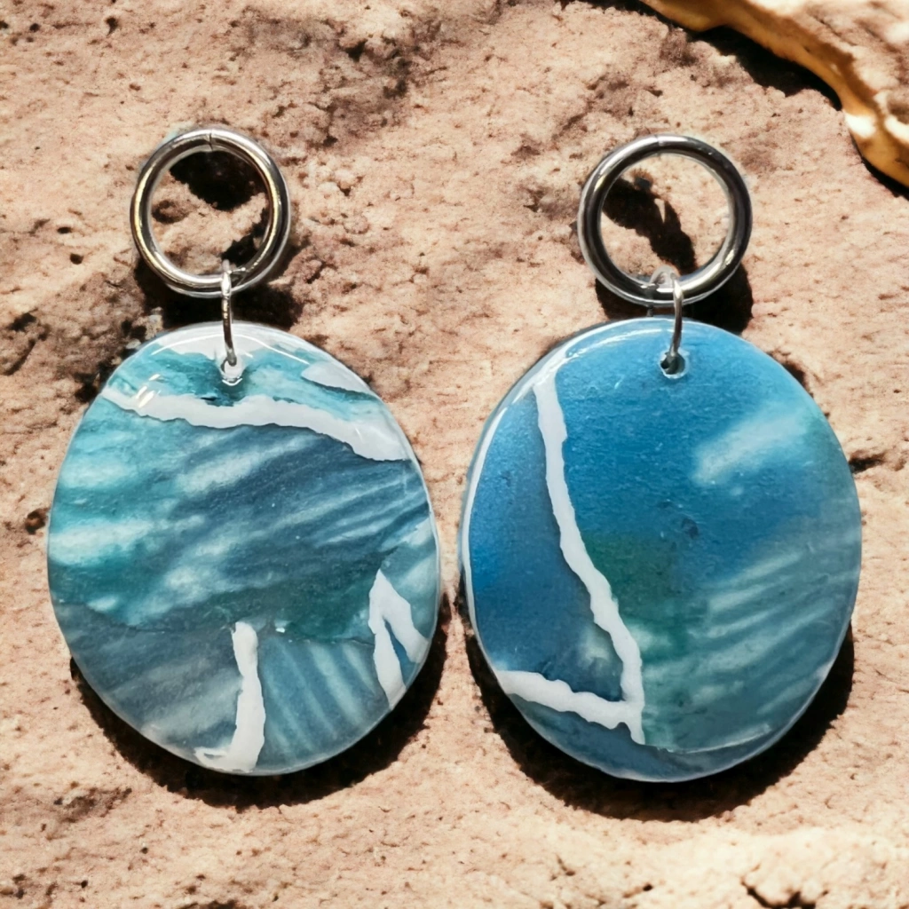 Reçine kaplama, küpenin yüzeyine derinlik ve parlaklık katarken, polimer kilin benzersiz dokusu ve renkleri, her bir parçanın özgün olmasını sağlar. Cerrahi çelik iğneler ise alerji yapmayan yapısıyla konforlu bir kullanım sunar.