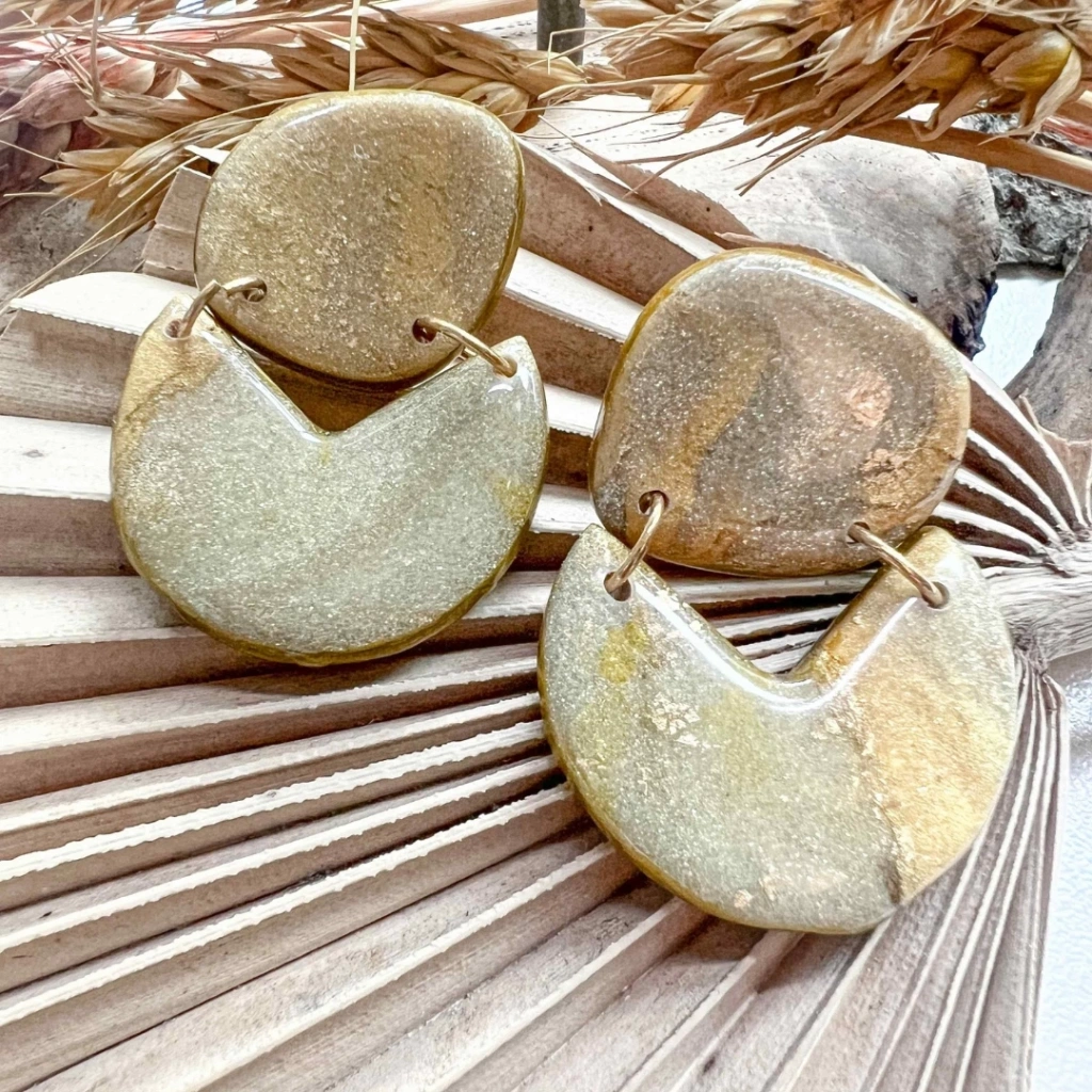 Reçine kaplama, küpenin yüzeyine derinlik ve parlaklık katarken, polimer kilin benzersiz dokusu ve renkleri, her bir parçanın özgün olmasını sağlar. Cerrahi çelik iğneler ise alerji yapmayan yapısıyla konforlu bir kullanım sunar.