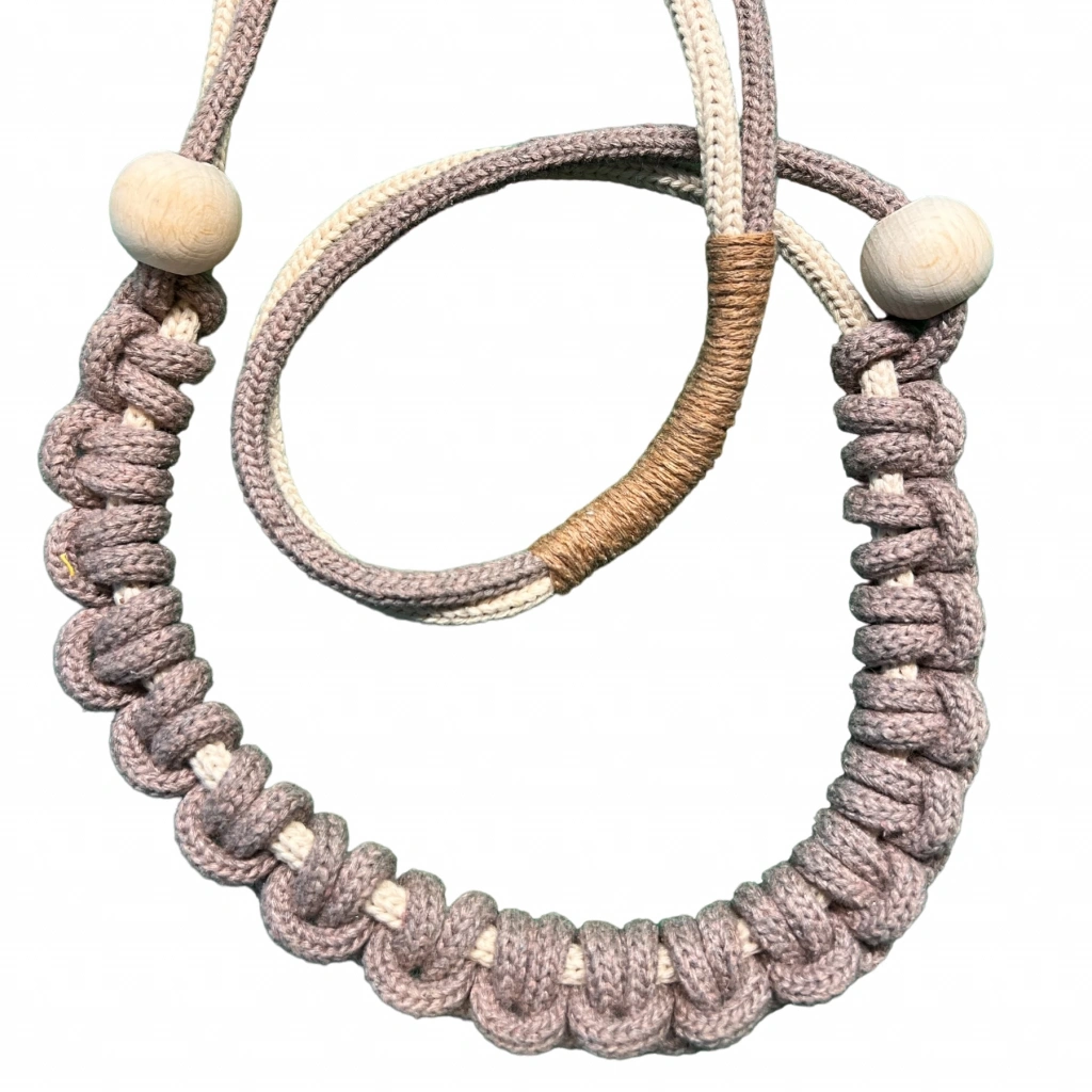 Bu el örgüsü iki renkli kolye, zarif ve modern bir tasarıma sahiptir. Yumuşak ipten özenle örülen kolye, hem şık hem de rahat bir kullanım sunar. İki farklı rengin uyumu, kolyeye dinamik bir görünüm kazandırmaktadır.